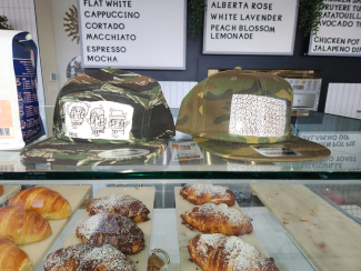 Hats are up for sale at Cafe La Reine. Head down and get your apparel now, while it's still available.